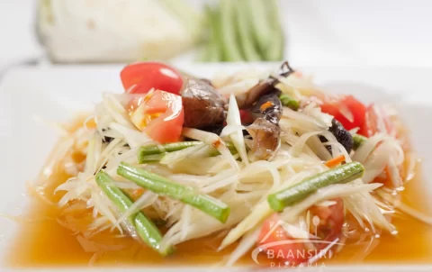 Spicy dried shrimp, salted egg and pickled mustard salad