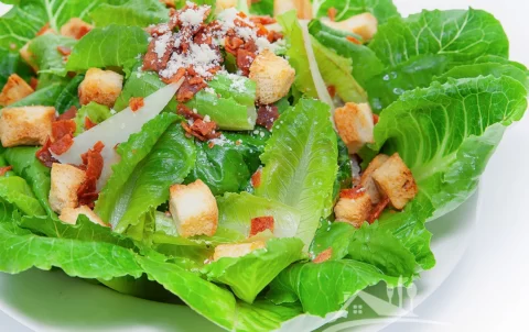 Lettuce, Crispy Bacon, Cheese And Breadcrumb Salad With Homemade Caesar Dressing